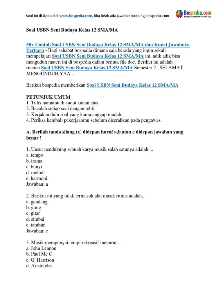 Soal Sbk Kelas 12 : Soal Ukk Pat Seni Budaya Sma Kelas 10 11 12 Semester 2 Dicariguru Com / Maybe you would like to learn more about one of these?